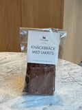 Knäckig saltlakritsbräck struken med mjölkchoklad och toppad med lakrits och havssalt.