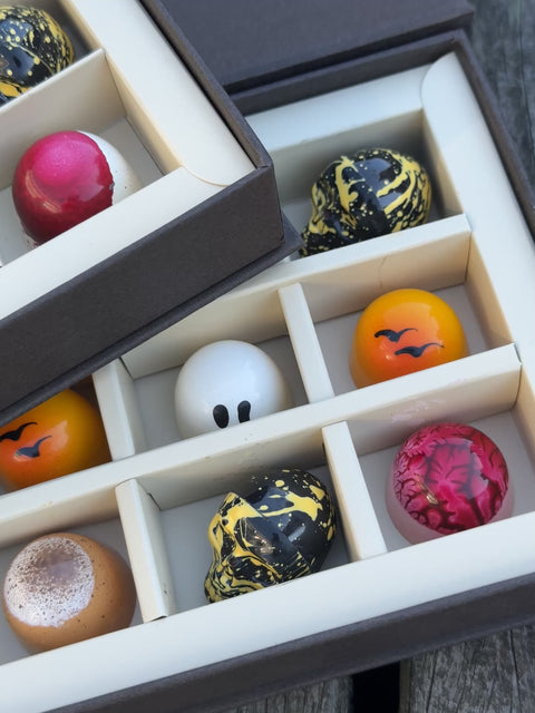 Väljer du denna ask får du 4st av våra skrämmande halloweenpraliner.