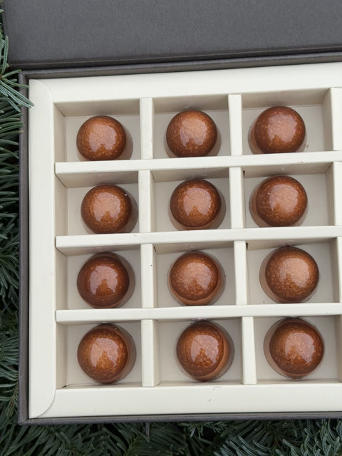 Väljer du denna ask får du vår klassiska favorit - Hasselnöt/nougat!